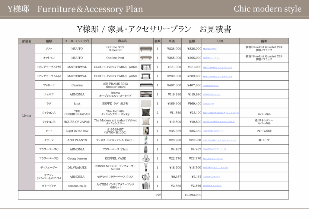 プランシート/アイテムリスト/3Dパース